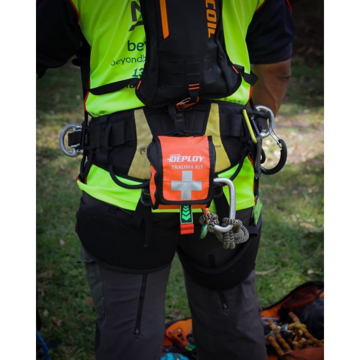 The DEPLOY® Trauma Kit is a compact, rapid-access bleeding control system designed for high-risk workers in remote or elevated environments. When seconds can mean the difference between life and death, this patent-pending first aid kit puts lifesaving equipment within one-hand reach.